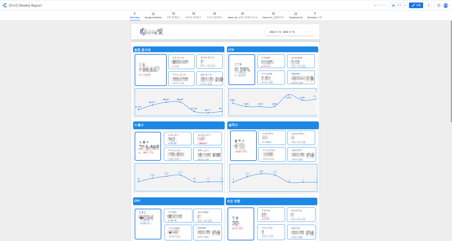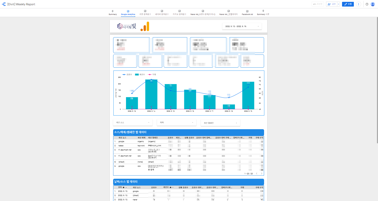 광고 데이터를 통합하여 확인할 수 있는 보고서를 제작하였습니다.
